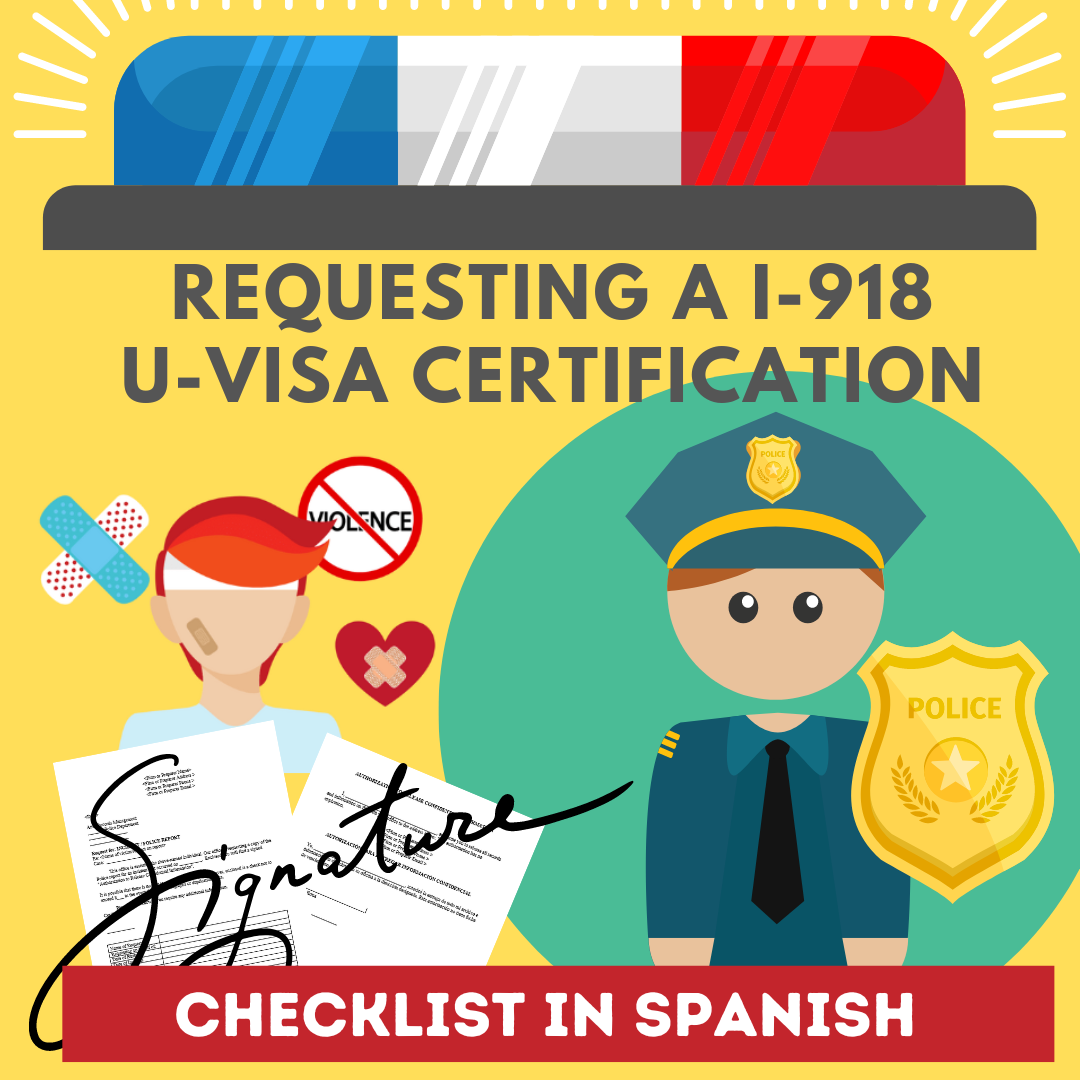 This is the SPANISH version of the checklist. This list details the items typically required for requesting an officer signature from either the police department or the district attorney, or other certifying agency. This document downloads as a ‘word’ document. Add your logo or modify the checklist as you see fit.